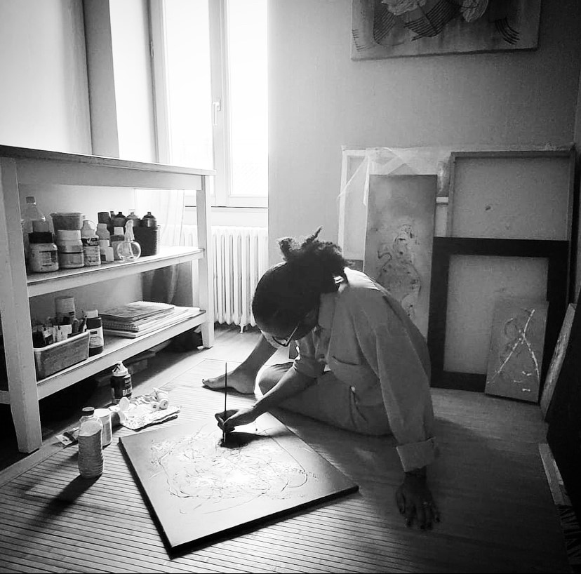 Peindre enfermée dans mon atelier avec un fond de musique ; telle est ma zone de confort.